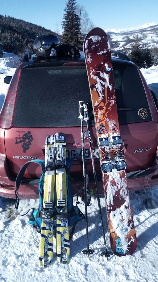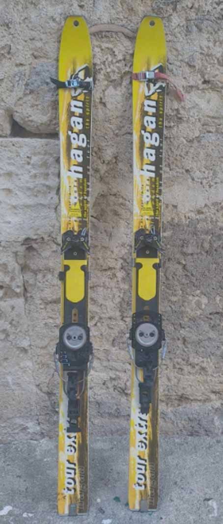 Je suis loin d'être spécialiste de la chose, mais à priori ça me parait bien plus judicieux pour de la rando à petit prix que de s'embarquer dans des bricolages hasardeux à base de snowblades modifiés pour lesquels il faut trouver des fixs et surtout des peaux: là y'a tout inclus, et en plus parfaitement raccord avec du monoski sur le plan vintage...