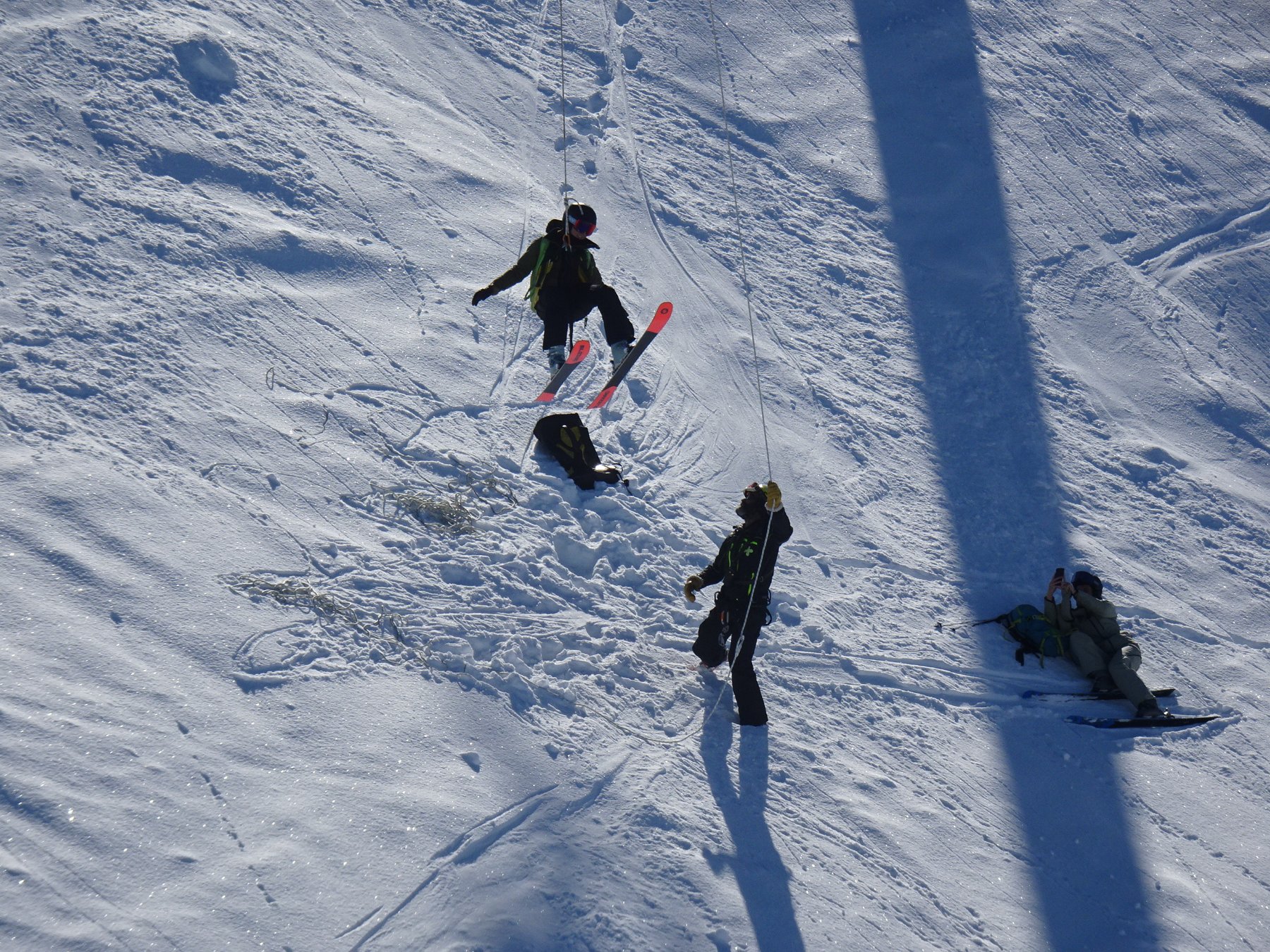 Tiens, en dessous de nous des pisteurs commencent à envahir le terrain