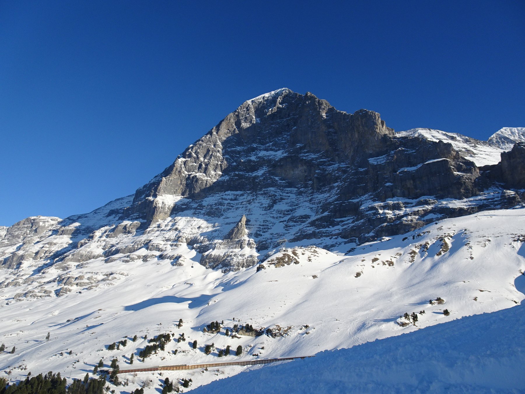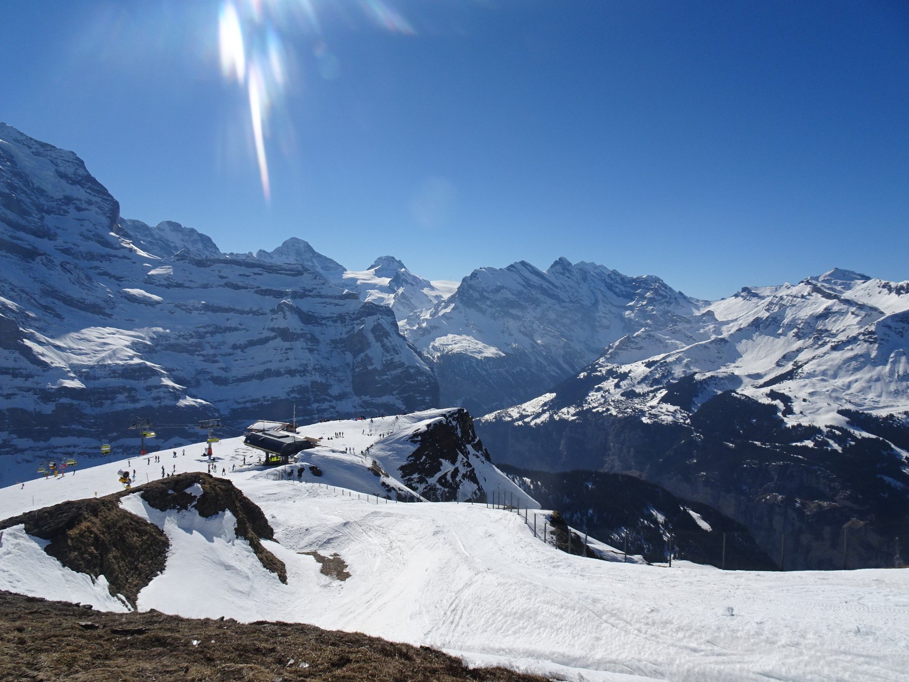 Une gare, le train arrive direct ici, 3 étages de parking en sous sol, 2 départs de grosse remontée mécanique, l'Eiger Express et le télécabine Männilichen