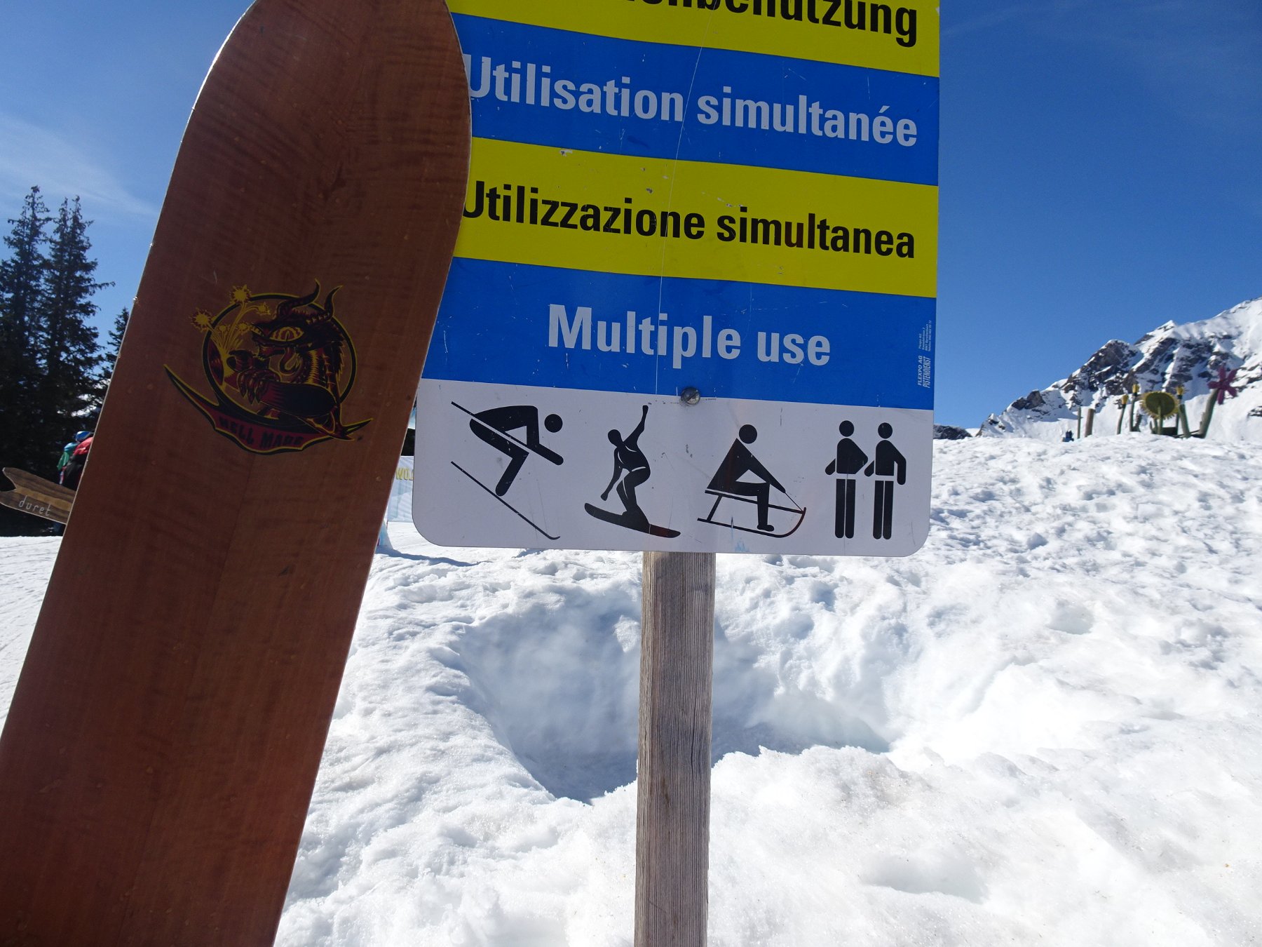Attention... piste commune aux skieurs, piétons, lugeurs et... Monoskieurs (sans bâtons lol ) :~mono1