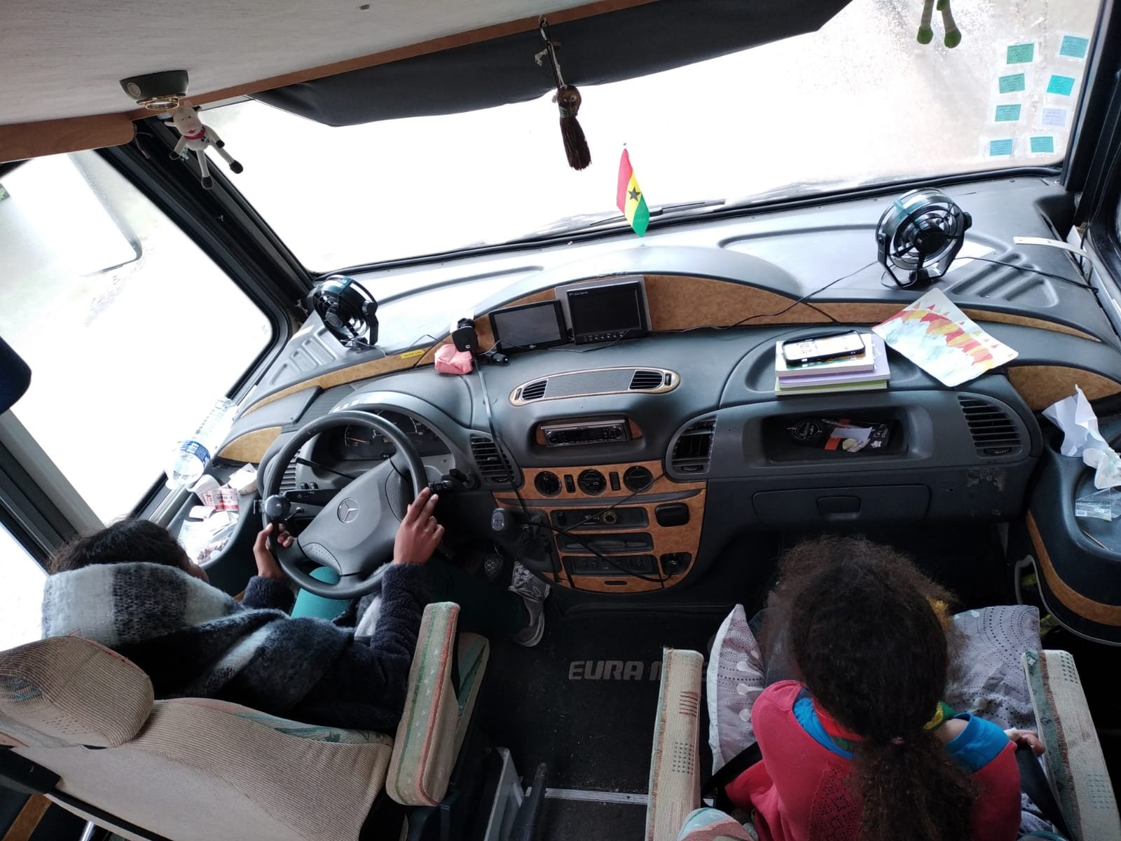 Elle conduit toute seule, et je reste assis entre les deux sièges, près du frein à main (qui, par ailleurs, n'est pas efficace...)