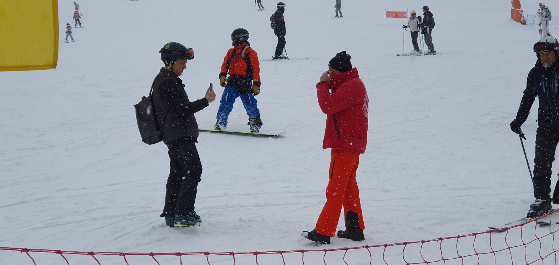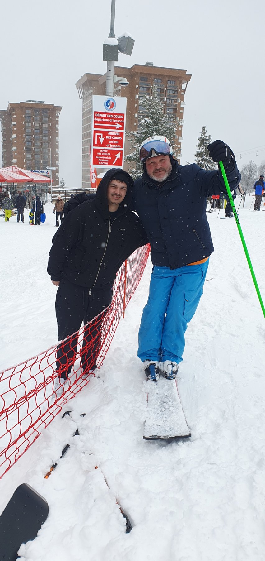 On va commencer par la journée de vendredi, neige et brouillard jusqu'à 14h suivi d'une improbable grosse ouverture météo ouvrant la visibilité sur les bords et entre-pistes chargés de 30 à 40cm, le coup de bol car pas pu skier avant